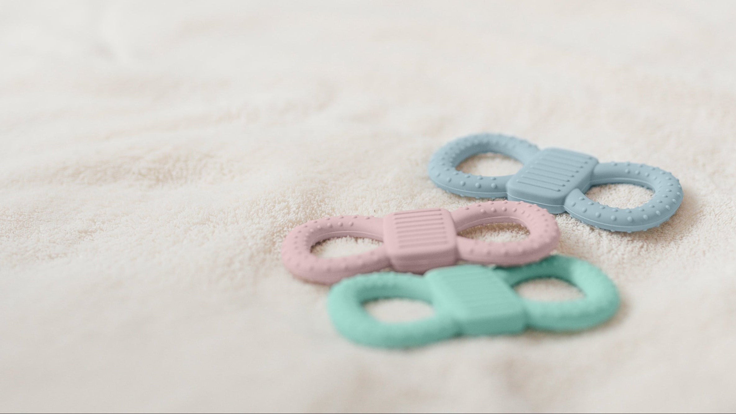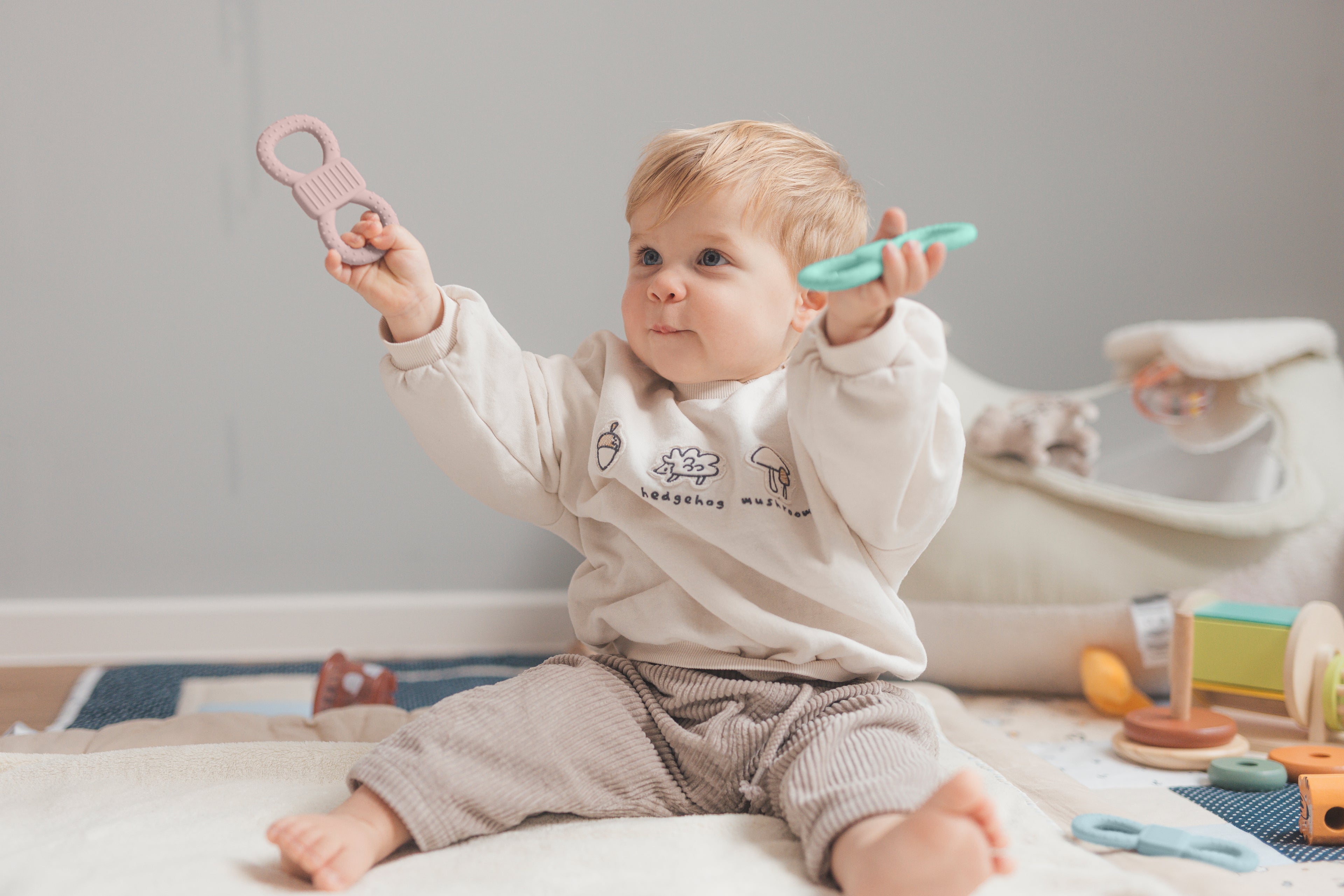 Mehr als nur Beruhigung. Unsere Produkte unterstützen dein Baby aktiv beim Zahnen, Greifen und Entdecken.